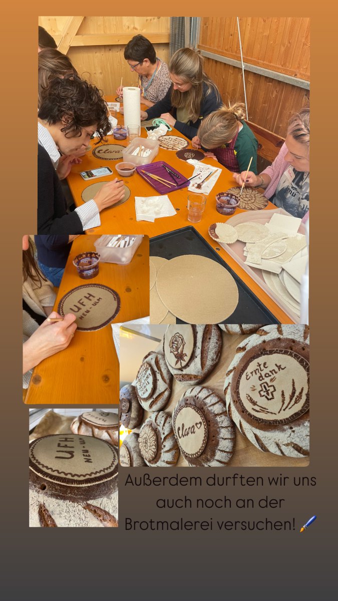 Am Sonntag, 14.09.2025 um 11 Uhr treffen sich die UFH-Frauen (und ausnahmsweise auch Männer) zu einem gemeinsamen Frühschoppen bei Maria Prinz und Familie in der Bäckerei Hörmann Klosterbäck in Roggenburg. Außerdem dürfen wir selber Brezeln backen und haben die Möglichkeit, uns an der Brotmalerei auszuprobieren.
